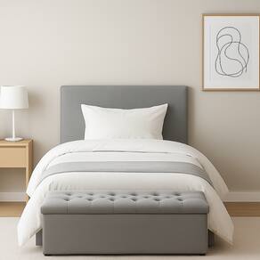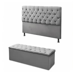 Conjunto Cabeceira com Calçadeira Cinza 90cm