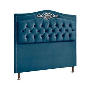 Conjunto Cabeceira e Calçadeira Holanda 140cm Veludo Luxor Azul Star Confort