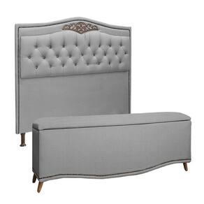 Conjunto Cabeceira e Calçadeira Holanda 1,95 cm Linho Star Confort - Grafite