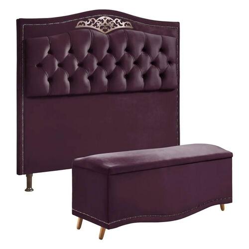 Conjunto Cabeceira E Calçadeira Holanda 195 Cm Luxor Roxo Speciale Home Roxo O conjunto de cabeceira e calçadeira Holanda possui um lindo design retro, essa linha é para quem busca renovar a decoração do quarto, sem deixar de lado o conforto e a praticidade. São resistentes e confeccionadas com materiais de alta qualidade, suas medidas são indicadas para cama box de 1,93 cm. Combine a cabeceira com travesseiros e almofadas de sua preferência e torne sua decoração ainda mais charmosa e aconchegante. A calçadeira pode ser usada para sentar e para guardar objetos, pois ela funciona como um baú. Não perca essa oportunidade e garanta já o seu! Características: Marca: Speciale Home Modelo: Holanda Material da Estrutura: Madeira de eucalipto Material e Densidade da Espuma: Poliuretano sem carga Revestimento: Veludo Pé Calçadeira: Em madeira chanfrado de 10,5 cm Pé Cabeceira: 2 unidades de PVC com 13 cm Pistões no Baú: Sim Cabeceira vai com frame de metal