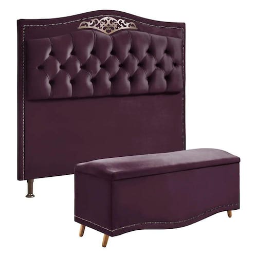 Conjunto Cabeceira e Calçadeira Holanda 195 cm Luxor Roxo Speciale Home