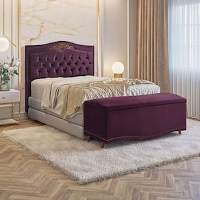 Conjunto Cabeceira e Calçadeira Holanda 1,95 cm Veludo Speciale Home - Roxo