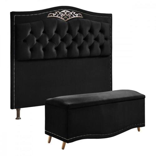 Conjunto Cabeceira e Calçadeira Holanda 90cm - Veludo Speciale Home - Preto