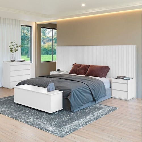 1x Cabeceira para Cama King em Mdf Florença Branco Largura: 314,4 cm Altura: 151 cm Peso: 62,1 kg Profundidade: 4,6 cm Necessita Montagem: Sim