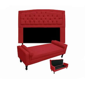 Conjunto Cabeceira Geovana + Calçadeira Fênix Casal 140cm Suede Vermelho - LM DECOR