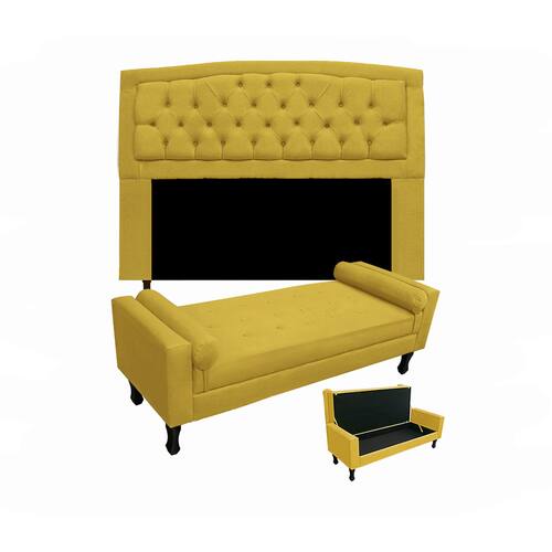 Conjunto Cabeceira Geovana + Calçadeira Fênix Queen 160cm Suede Amarelo - LM DECOR