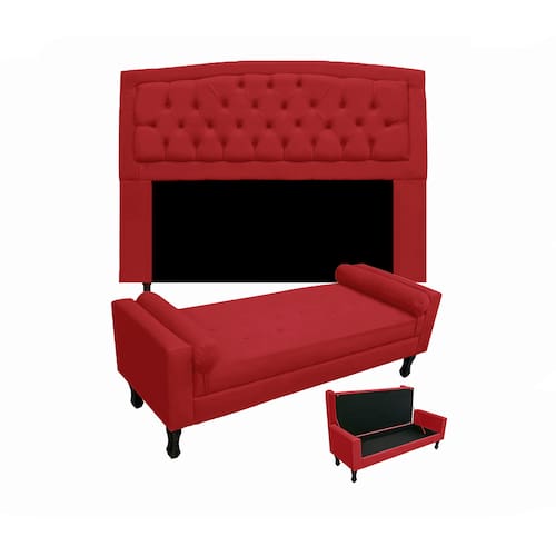 Conjunto Cabeceira Geovana + Calçadeira Fênix Queen 160cm Suede Vermelho - LM DECOR