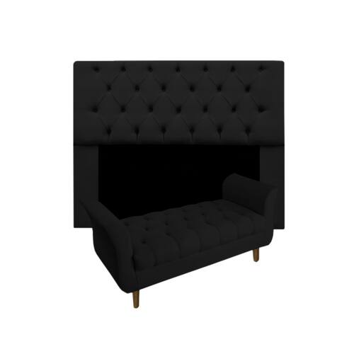 Conjunto Cabeceira Mirage Com Recamier Grécia Casal 140 cm Suede Preto - LM DECOR