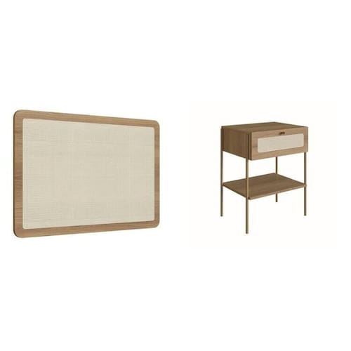 O Conjunto de Cabeceira e Mesa de Cabeceira Oslo é confeccionada em MDP com acabamento BP e aplique de tela sintética. Conjunto perfeito para complementar a decoração e organização do seu dormitório. Traz como característica um traço artesanal, suave e acolhedor. Com design escandinavo minimalista, remete em suas linhas retas a simplicidade, charme e funcionalidade que sua casa merece. Composta com uma paleta de cores neutras, onde refletem as paisagens nas quais a linha foi inspirada, tornando-se assim a opção ideal para um ambiente com toque sofisticado e ao mesmo tempo aconchegante. Altura do Conjunto: 60 cm Ambiente: null Ambiente Principal: Quarto Cor: Hanover/Dourado Informação Complementar: 1x Mesa de Cabeceira 1 Gaveta Palhinha Pé Metal Dourado Oslo Hanover/Dourado Largura: 48 cm Altura: 60 cm Peso: 7,5 kg Profundidade: 37,5 cm Necessita Montagem: Sim