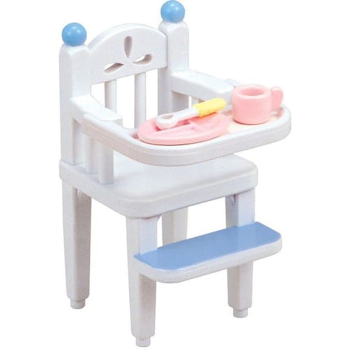 Este cadeirão branco com detalhes em azul permite aos pequenos bebês saborearem suas refeições no alto, com muito conforto e segurança. Mobiliário básico para a casa da sua família sylvanian. Incluído a cadeira e pratos para seu bebê sylvanian. Muito bem feito e com ótima atenção aos detalhes. Bom para estimular a criatividade e imaginação em crianças. Adequado para crianças de 3 anos e acima.Imagens meramente ilustrativas. Código de Barras: 5054131052211.Código de Referência: 5221.Marca: Epoch.Série: Sylvanian Families.Modelo: Conjunto Cadeirão do Bebê.Idade: +3 anos.Medidas da Caixa: 10 x 05 x 08 cm.Certificado: Inmetro Ce-Bri/Innac - 00890-03A NM 300/2002 Ocp 0061.Produto novo, lacrado e com nota fiscal.