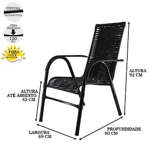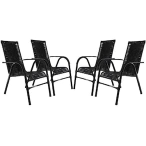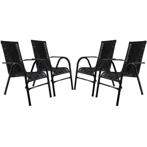 Conjunto Com 4 Cadeiras Bela, Artesanal, Para área, Varanda, Edícula, Fibra Sintética Preta