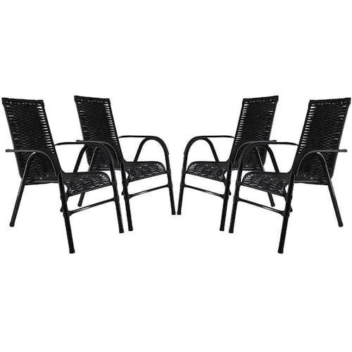 Conjunto Com 4 Cadeiras Bela - Preta, Artesanal, Para área, Varanda, Edícula, Fibra Sintética