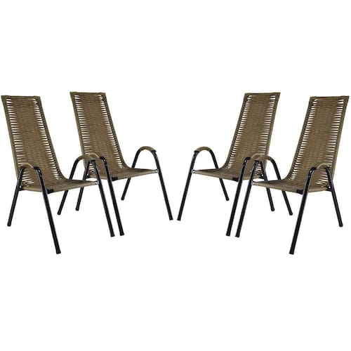 Conjunto 4 Cadeiras Canadá - PANERONossos produtos são de altíssima qualidade, leve, acabamento e design moderno, garantindo assim conforto e praticidade para seu bem-estar.Itens inclusos: 4 Cadeiras.Especificações.- Estrutura: Aço Carbono, resistente;- Acabamento: Fibra sintética com UV Protection (vime/junco);- Solda: Solda Mig, de alta resistência.- Pintura: Pintura eletrostática epóxi de alta qualidadeFABRICANTE: PANEROAmbientes: Móveis para jardim, varanda, edícula, área, sacada, recepção, sala de espera, cozinha, sala, área de Piscina, área de lazer, Festa, Reunião, área de Churrasco, área Gourmet entre outros.Fibra Sintética especial com UV PROTECT que proporciona maior durabilidade e Resistencia ao Sol, são produzidas com materiais de altíssima qualidade.GARANTIA: 90 dias.Design Moderno proporciona a ambientação e decoração para diversos ambientes e para todos os gostos!Fácil de Limpar Utilize Sabão Neutro para a limpeza das fibras e estruturas.TGA Você também pode buscar por - Conjunto de cadeiras, jogo de cadeiras, cadeiras e mesa, cadeira de área, cadeira de descanso, cadeira confortável, Cadeira e mesa, Cadeira de vime, cadeira de fibra, cadeira artesanal, cadeira de junco, Jogo de mesa, conjunto de mesa, área gourmet, cadeira artesanais, móveis artesanais, móveis artesanais, kit de cadeiras, kit 4 cadeiras, combo de cadeiras.