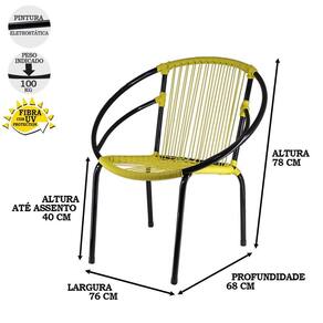Conjunto Com 3 Cadeiras Eclipse De área, Corda Sintética, Varanda, Decor, Artesanal