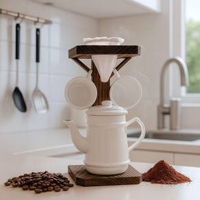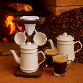 Conjunto café com bule de alumínio e suporte rústico branca Conjunto para café artesanal - suporte em madeira com coador de pano, bule em alumínio e 2 canecas em acrílico Transforme seu cantinho do café em um espaço cheio de charme e aconchego, trazendo para sua casa o charme de uma cafeteria. Este conjunto artesanal reúne um suporte em madeira rústica, cafeteira em alumínio com design retrô, coador de pano removível e duas canecas em acrílico, unindo funcionalidade e estilo para momentos únicos. Perfeito para decorar sua cozinha, varanda ou sacada, é o convite ideal para celebrar pausas gostosas - seja o coffee break relaxante, o café da manhã em família ou aquela tarde com amigos. Cada peça foi pensada para trazer conforto e uma experiência acolhedora. Presenteie-se ou surpreenda quem você gosta com um item que combina tradição, qualidade e afeto. Porque café não é só bebida, é momento para compartilhar, celebrar e apreciar com estilo e carinho. Dimensões aproximadas: - suporte coador de café em madeira: altura: 22 cm x largura: 12 cm x comprimento: 12 cm - bule de café em alumínio de 450 ml: altura: 11 cm x largura: 7 cm x comprimento: 7 cm Características do produto: - suporte artesanal em madeira com acabamento rústico decorativo, coador de pano removível para café, bule em alumínio e duas canecas em acrílico. Um conjunto funcional, feito com cuidado e bom gosto para valorizar e organizar seu cantinho do café. Cuidados e sugestões: - limpe o suporte de madeira com pano seco ou levemente umedecido. Lave o coador de pano apenas com água e deixe secar bem. Use o lado amarelo da esponja para limpar o bule de alumínio e as canecas acrílicas, evitando riscos. Guarde em local arejado e seco. do produto: - o produto é cuidadosamente embalado para evitar danos durante o transporte. Caso ocorra algum problema, oferecemos um sistema de e troca para sua tranquilidade. Imagens meramente ilustrativas - produto artesanal, podendo variar de cor e/ou tonalidade Marca: Não Informado