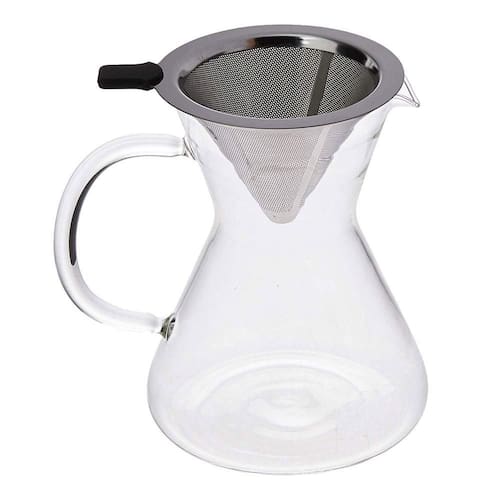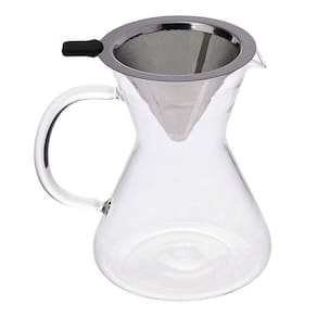 Fabricado em forma de ampulheta com alça, o Conjunto para Café Jarra de Vidro e Filtro Permanente em Inox 600ml é confeccionado em vidro borosilicato que não absorve odores, garantindo assim grande durabilidade e qualidade ao longo do tempo. A utilização do Conjunto para Café Jarra de Vidro e Filtro Permanente em Inox 600ml é extremamente simples e semelhante a qualquer extração feita por coador. Primeiramente adiciona-se o café moído no filtro permanente e depois a água aquecida. A extração se iniciará. Preparar um cafezinho nunca foi tão divertido