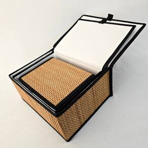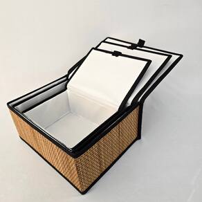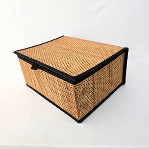 CONJUNTO DE 3 CAIXAS ORGANIZADORAS MULTI USO RETANGULARES COM TAMPA - ESTRUTURA EM BAMBU COM COSTURA DE NYLON - REVESTIDO EM RATAN E FORRAÇÃO INTERNA DE ALGODÃO.