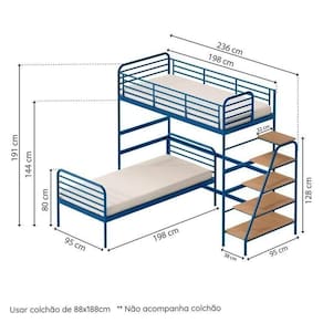 1x Cama Alta Infantil/juvenil Teko Azul / Álamo Largura: 236 cm Altura: 191 cm Peso: 78 kg Profundidade: 95 cm Necessita Montagem: Sim