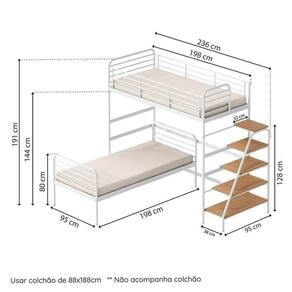 1x Cama Alta Infantil/juvenil Teko Branco Fosco / Álamo Largura: 236 cm Altura: 191 cm Peso: 78 kg Profundidade: 95 cm Necessita Montagem: Sim