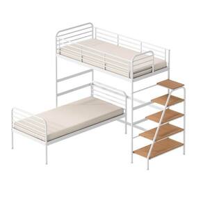 A Cama Alta conta com uma escada lateral multifuncional, que também funciona como estante decorativa e organizadora. Na parte inferior, a cama de solteiro com cabeceiras em tubos metálicos arredondados proporciona charme atemporal e conforto para o dia a dia.