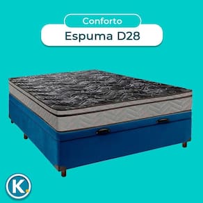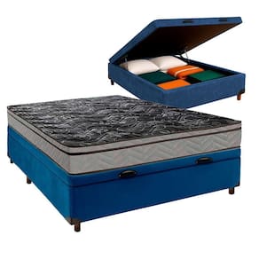 Conjunto Cama Box Bau Azul Casal + Colchão D28 Conforto Paropas Conjunto Casal Colchão Conforto + Cama Box Bau Colchão Casal com 17cm de altura, ideal para uso diário e confortável