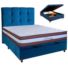 Conjunto Cama Box Bau Azul Casal + Colchão Molas Ensacadas Legaccy Paropas + Cabeceira - Azul | Branco