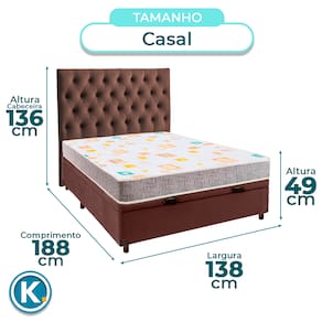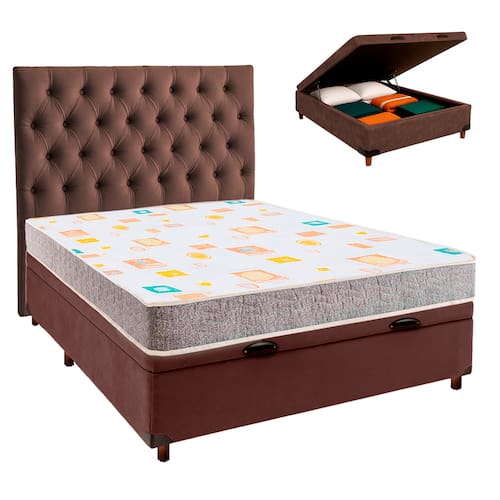 Conjunto Cama Box Bau Marrom Casal + Colchão D20 D20 Inducol + Cabeceira