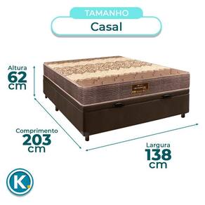 Suporta até 120kg, ideal para uso frequente com firmeza equilibrada Base baú Casal com 37cm de altura e amplo espaço interno para organização