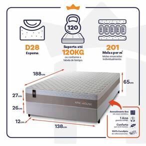 Feito com os mais nobres materiais em sua composição, ele conta com espuma D28 e molas ensacadas. Por ser mais macio, o colchão de molas ensacadas individualmente traz benefícios e ajuda no alinhamento da coluna. O colchão King House acomoda melhor o contorno do corpo, dispondo de forma correta quadris e ombros, expulsando as dores e problemas de coluna.