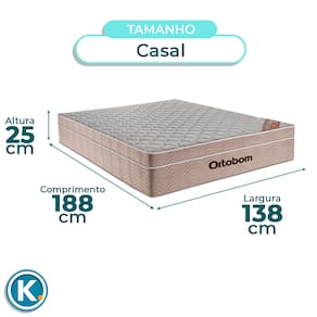 Conjunto Casal Colchão Airtech + Cama BoxColchão Ortobom Casal com 25cm de altura, ideal para conforto no uso diárioTecido em poliéster que garante toque suave e boa ventilaçãoSuporte de até 120kg, ideal para diferentes biotipos com firmeza balanceadaBase box casal ideal para otimizar o espaço do quarto com praticidadeRevestimento em Material Sintético: fácil de limpar e com visual modernoEstrutura firme e resistente com suporte para até 150kgFicha Técnica Colchão:Modelo: AirtechMarca: OrtobomTamanho: CasalTecido: PoliésterLargura: 138cmComprimento: 188cmAltura: 25cmSuporte de Peso: 120KgGarantia: 3 MesesFicha Técnica Cama Box:Modelo: UniversalMarca: NatureTamanho: CasalTecido: Material Sintético Cor: BrancoLargura: 138cmComprimento: 188cmAltura: 25cmAltura dos Pés: 13cmMaterial dos Pés: MadeiraSuporte de Peso: 150KgPeso: 27KgGarantia: 3 MesesAtenção:Antes da compra certifique-se de que o produto passa por elevadores, portas e corredores.As transportadoras não realizam entregas por escadas ou içamentos.Caso o item não caiba no elevador, a entrega será considerada concluída no térreo do prédio.A cor e tonalidade do produto pode variar de acordo com o dispositivo que o usuário está acessando.