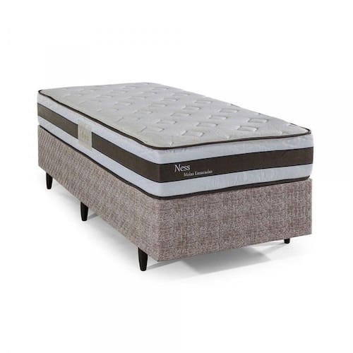 Através do sistema de molas ensacadas, o Colchão Ness Molas Ensacadas permite que o seu corpo se adeque a necessidade do sono. Lateralmente, conta com um exclusivo detalhe de faixinha, agregando diferenciação ao produto e internamente conta com a exclusiva EcoSpuma®, que possui alta densidade e garante uma sustentação mais uniforme com menos chance de deformação, o que aumenta a vida útil do seu Colchão. Box Rígido de alta resistência e durabilidade, que oferece suporte para colchões de diversos tipos e tamanhos aumentando a vida útil do seu colchão e qualidade do seu sono. Lateral com Ultrassom. Sistema de desenho das laterais que trazem tecnologia inovadora, pois possibilitam respiro do produto, renovando o ar interno. Altura do Conjunto: 54 cm Ambiente: null Ambiente Principal: Quarto Cor: Branco/Marrom Informação Complementar: 1x Colchão Solteiro 88x188x26cm Mola Ensacadas One Side Pillow Meca Ness MarromLargura: 88 cmAltura: 20 cmPeso: 18.5Profundidade: 188 cmNecessita Montagem: Não1x Base Box Solteiro Rígido Idea Colchões BegeLargura: 0,88 cmAltura: 28 cmPeso: 19Profundidade: 1,88 cmNecessita Montagem: Sim Permite a Utilização de Cama Auxiliar: Não Tamanho: