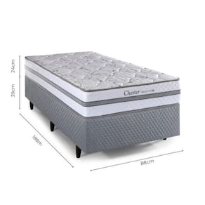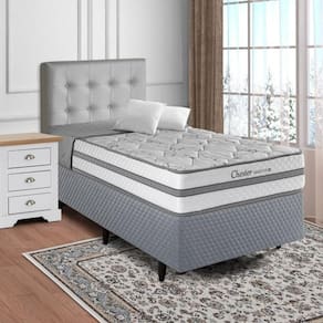 O produto conta com molas Maxspring, que permitem que o seu corpo se adeque a necessidade do sono. Além disso, possui um exclusivo detalhe de faixa lateral, agregando design e diferenciação para este modelo. É a tecnologia Europeia diretamente para sua casa. Colchão Pillow Top One Side, camada de espuma localizada na parte superior do colchão, sobre o molejo, proporcionando excelente conforto ao usuário. Por sua concepção, durante sua manutenção não há necessidade de virar o colchão, apenas gira-lo de vez em quando. Box Rígido de alta resistência e durabilidade. Conta com Ultrassom na Lateral e um sistema de desenho que oferece uma tecnologia inovadora, já que possibilita o respiro do produto, renovando o ar interno e eliminando bactérias. Altura do Conjunto: 63 cm Ambiente: null Ambiente Principal: Quarto Cor: Branco/Cinza Informação Complementar: 1x Colchão Mola Maxspring 880x1880x240 mm ULT Chester Maxspring ONE S.pillow BrancoLargura: 88Altura: 24Peso: 13,2Profundidade: 188 cmNecessita Montagem: Não1x Base Box Solteiro 88x188x28cm Idea CinzaLargura: 88 cmAltura: 28 cmPeso: 19Profundidade: 188 cmNecessita Montagem: Sim Permite a Utilização de Cama Auxiliar: Não Tamanho: