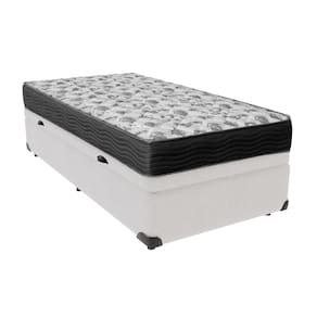 Base Box com Baú: Marca: KazaMix; Cor do Baú: Branco; Revestimento da Cama: Material Sintético; Material dos pés: Madeira; Estrutura: Madeira; Abertura: Pistão a gás; Peso máximo recomendado: até 150kg de cada lado; Altura do Baú: 32cm; Altura dos pés: 5cm; Altura total: 37cm; Garantia: 03 meses; Selo Ecologicamente Correto.