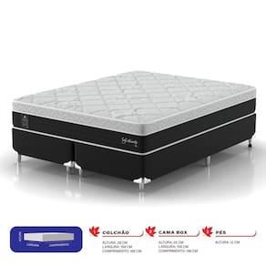 Colchão com Estrutura interna composta de molas ensacadas invidualmente, Espuma visco elástica, espuma puliuretano densidade 26kg/m3, EPS - Poliestireno Expandido e feltro resinado. Faixa lateral no tecido maquinetado geométrico, tampo e europillow na malha 180g e fundo do produto TNT 100g anti derrapante. Cor da faixa grafite, tampo e europillow branco com estampa cinza, fundo preto. Box com madeira pinus e eucalipito, Faixa lateral no tecido maquinetado geométrico grafite, TNT 70g preto na parte de cima e na parte de baixo. Abertura para Ventilação: Não Acompanha Cama Auxiliar: Não Acompanha Colchão: Sim Altura da Base Box (Sem o Colchão): 25 Altura do Colchão (Sem a Base Box): 28 Ambiente Principal: Quarto Antiácaro: Sim Antialérgico: Sim Antifungo: Sim Cantoneiras: Sim Cor: Cinza Cor do Produto: Cinza Informações Complementares: Colchão com malha 180g e estampa floral, esta malha além de ter um toque macio e agradável, proporciona maior conforto e possui grande segurança contra eventuais desfiações. Sua estrutura é composta por espuma poliuretano densidade 26kg/m2 que dá mais con Itens Inclusos: 1 Colchão, 2 Box. Linha ou Coleção: Linha Manual de Montagem e Instalação: https://product-hub-prd.madeiramadeira.com.br/871068/documents/e7692272-8572-4747-bdd1-c96382879ae3manualdemontagemdoboxcasal.pdf Material da Estrutura: Pinus Material dos Pés: Plástico Necessita Montagem: Sim Nível de Conforto: Intermediário Origem do Produto: Nacional Peso: 52.3 Pillow: Pillow Euro Possui Baú: Não Possui Pillow: Sim Precisa virar: Não Recomendações de Uso, Manutenção e Limpeza: Seguir manual de instruções. Revestimento: Suede Revestimento da Base Box: Acabamento com linhas poliester Tamanho: Queen Tamanho de Colchão: Queen Tipo do Colchão: Mola