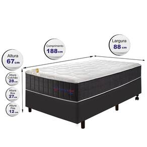 FICHA TÉCNICA DO PRODUTO Tamanho SOLTEIRO 88cm X 188cm SOBRE O COLCHÃO Altura 28 cm Espuma Estrutural D26+Eps Molas Ensacadas (molas Ensacadas individualmente) Revestimento do Tampo em Malha importada Revestimento da Faixa lateral em Suede Revestimento do Fundo com Forro Antiderrapante