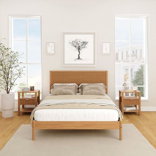 A linha Oiti é uma celebração da madeira natural e do design, trazendo ao quarto um equilíbrio perfeito entre conforto e sofisticação. Produzida em madeira maciça de pinus e finalizada com um verniz de alta qualidade, a linha destaca um tom quente e acolhedor, que envolve o ambiente com uma sensação de bem-estar e aconchego.