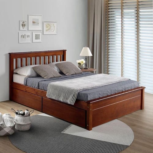 Acompanha o produto: - 1 Cama Casal Inglesa com Dois Gavetões em Madeira Maciça Mv Manual de MontagemKit Ferragem Garantia: - MV