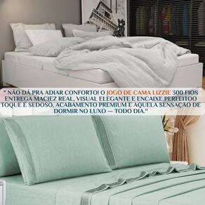 Conjunto cama casal king size lizzie 04 pç bordado 300 fios toque extra macio Cor: verde Você já parou pra pensar na diferença que um bom jogo de cama pode fazer na sua noite de sono O conjunto lizzie é confeccionado com 300 fios, acabamento bordado delicado e aquele toque acetinado e macio que você só encontra nos melhores enxovais.