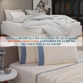 Conjunto Cama Casal King Size Luna 100% Algodão Toque De Seda Cor: PALHA Quer transformar seu quarto em um refúgio de conforto e elegância O Conjunto Cama Casal King Size Luna, da De Luca Enxovais, é a escolha perfeita Feito com 100% algodão de altíssima qualidade, ele oferece um toque suave e macio que lembra seda, garantindo noites de sono incríveis. O design sofisticado e o acabamento impecável trazem um ar de luxo para o seu quarto. Imagine dormir todas as noites envolto em uma maciez que parece um abraço aconchegante. O Conjunto Luna da De Luca Enxovais não é apenas um conjunto de cama, é um convite para noites de sono revigorantes e momentos de puro relaxamento. Presenteie-se ou quem você ama com o conforto que merece. Seu quarto nunca mais será o mesmo Contém na embalagem: 01 Lençol de Cima 2,85m x 2,60m 01 Lençol de Baixo com Elástico para Colchão de 2,03m x 1,93m x 40cm 02 Fronhas 70cm x 50cm Composição: 100% Algodão Clique em Comprar Agora e transforme seu quarto em um refúgio de conforto e elegância com a qualidade De Luca Enxovais 1. Qual o tamanho do conjunto de cama O conjunto é tamanho King Size, perfeito para camas grandes e espaçosas. 2. Como devo lavar o conjunto de cama Recomendamos lavar na máquina com água fria e secar à sombra para manter a maciez e a qualidade do tecido. Evite usar alvejante. 3. O tecido esquenta muito no verão Não O tecido de 100% algodão é respirável, proporcionando conforto térmico tanto no inverno quanto no verão. 4. Qual o prazo de entrega O prazo varia conforme sua localização, mas geralmente entregamos em até 7 após a confirmação do pagamento. 5. Posso devolver se não gostar Sim Oferecemos 30 dias de para troca ou devolução, caso o produto não atenda às suas expectativas. Não perca essa chance O Conjunto Cama Casal King Size Luna 100% Algodão Toque de Seda, da De Luca Enxovais, é a escolha perfeita para quem busca conforto, qualidade e sofisticação. Compre agora e garanta noites de sono incríveis em um quarto que parece saído de revista Marca: Não Informado Ean: 7795445226612