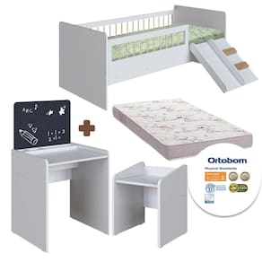 Itens Inclusos:1 Cama, 1 Colchão, 1 Mesa com Quadro e 1 Banqueta