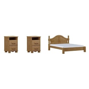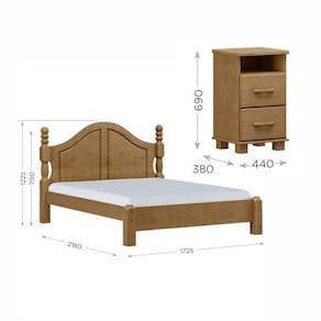 Este combo inclui uma cama queen clássica em madeira maciça de pinus com acabamento PU/UV na cor freijó, ideal para colchão de 1,58 × 1,98 m. A estrutura robusta e o design elegante garantem conforto e durabilidade, com capacidade para até 220 kg distribuídos. Acompanha duas mesas de cabeceira com gavetas espaçosas e nicho decorativo, perfeitas para organização. As gavetas possuem corrediças telescópicas, e os puxadores e pés são também em madeira maciça, reforçando o padrão de qualidade. Possui Portas: Não Possui Rodízio: Não Acompanha Colchão: Não Altura do Conjunto: 122.5 cm Ambiente: null Ambiente Principal: Quarto Cor: Freijó Informação Complementar: 2x Mesa de Cabeceira 2 Gavetas e Nicho 100% Madeira Maciça Linha Ouro Freijó Largura: 44 cm Altura: 69 cm Peso: 11,6 kg Profundidade: 38 cm Necessita Montagem: Sim