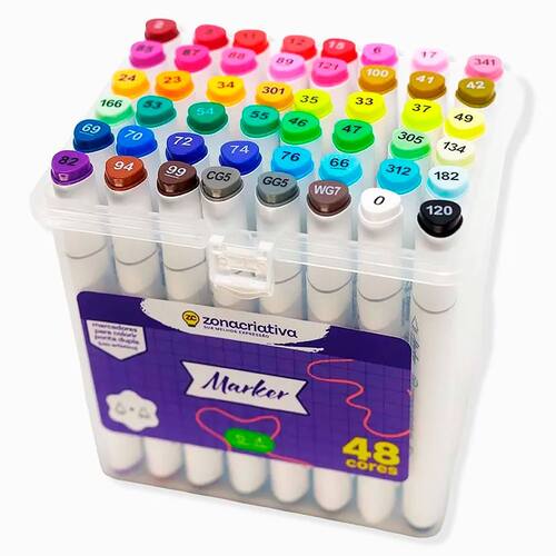 1 Conjunto Canetinhas Coloridas Ponta Dupla 48 Cores 10073766 - ZonaCriativa
