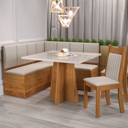 Transforme seu espaço com este encantador Canto alemão Bariloche com 2 cadeiras Dallas, que combina funcionalidade e estilo! Com um elegante baú que serve como banco, oferece conforto e armazenamento prático. A mesa quadrada, moderna e sofisticada, traz um toque de luminosidade ao ambiente, perfeita para refeições ou momentos de lazer. Acompanhada por duas cadeiras acolhedoras, este conjunto é ideal para reunir amigos e familiares. Seu design moderno harmoniza com qualquer decoração. Aproveite a oportunidade de criar um espaço aconchegante e convidativo em sua casa. Não perca a chance de adquirir este canto alemão e eleve o conforto do seu lar. Medida da Mesa (A x L x P): A:78 x L:90 x P:90cm Peso da Mesa: 23 kg Mesa suporta até: 50.0000 Acabamento da Cadeira/Banco: Pintura UV Acabamento da Mesa: Pintura UV Acompanha Manual de Instalação: Sim Ambiente Principal: Sala de Jantar Cadeira/Banco estofada: Encosto e Assento Estofados Cadeira/Banco Estofada: Encosto e Assento Estofados Cadeira/Banco suporta até: 90.0000 codigo_ean: 7909903973899 Complexidade da Montagem: Média: pode ser montado por mais de uma pessoa e/ou necessite de maior conhecimento para montagem Configuração do Conjunto: Canto Alemão Cor: Mel/Blonde/Marfim Cor das Cadeiras: Bege Cor do Produto: Mel/Blonde/Marfim Cor do Tampo: Off White Cor Secundária: Bege De Canto (Canto Alemão): Sim Design da Base: Em X Enchimento do Assento: Espuma D-16 Enchimento do Encosto: Espuma D-12 Escala de Brilho: Semi-Brilho Espessura do Tampo: 25 mm Estrutura do Assento: MDP/Espuma Estrutura do Encosto: MDF/MDP Formato do Tampo: Quadrado Informações Complementares: Canto alemão Baú com Mesa e 2 cadeiras Itens Inclusos: 1 CANTO, 1 MESA, 2 CADEIRAS, MANUAL DE MONTAGEM, KIT FERRAGEM Linha ou Coleção: Viero Manual de Montagem e Instalação: https://product-hub-prd.madeiramadeira.com.br/958015/documents/1d6dd43c-31ed-4127-b9c6-a2fc9d1196c7243944052817285023989544.pdf Marca: Viero Material da Base da Mesa: MDP Material da Estrutura da Cadeira: MDF/MDP Material do Tampo: MDP Material Principal: MDF/MDP Material Principal das Cadeiras/Bancos: MDF/MDP Medida da Cadeira/Banco (A x L x P): A:98,5 x L:38 x P:50,2cm Medida do Canto Alemão (A x L x P): Canto Maior: A:90,5 x L:137,5 x P:46,5 - Canto menor: A:90,5 x L:136 x P:46,5 Medida do Tampo (L x C x E): L:90 x P:90 x E:2,5cm Mesa Extensível: Não Necessita Montagem: Sim Origem do Produto: Nacional Peso da Cadeira/Banco: 6,75 kg Possui Apoio para Braços: Não Possui Apoio Para os Pés: Não Possui Prateleiras: Não Possui Vidro: Não Quantidade de Cadeiras: 2 Quantidade de Lugares: 05 Recomendações de Uso, Manutenção e Limpeza: limpar com pano levemente umedecido Revestimento da Cadeira/Banco: Veludo Sistema de Montagem: Parafusos Tipo de Encosto: Estofado