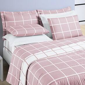 Conjunto Casal Queen Size Xadrez 03 Peças 200 Fios Super Moderno Cor: Rosa Conjunto Casal Queen Size Xadrez 03 Peças 200 Fios Super Moderno