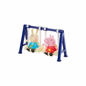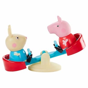 O brinquedo No Parque com a Peppa inclui figuras da Peppa Pig e sua amiga Rebecca Coelho, além de acessórios de balanço e gangorra. As crianças podem recriar suas cenas favoritas da série ou criar histórias inspiradas na série Peppa Pig. Os acessórios de balanço e gangorra são ideais para muitas brincadeiras!