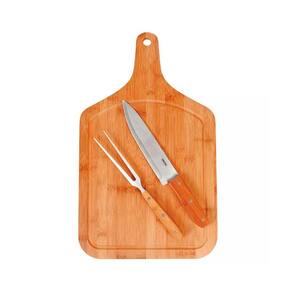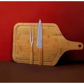Para completar seu kit de acessórios para o final de semana, a Mor traz o conjunto Churrasco 3 peças Bamboo Tábua com Cabo. Ele é formado por uma tábua de bamboo de 30cm x 50cm com sulcos em suas bordas e um orifício no cabo para que você o pendure, mantendo-o sempre à mão. Conta com um garfo trinchante e uma faca com cabo em bambu e lâminas em aço inoxidável, ideais para o corte das mais diversas carnes. Além de ecologicamente correto, o bambu é um material extremamente resistente e durável. Você recebe esse conjunto em uma caixa própria para presentear aquele amigo que é um churrasqueiro de mão cheia Especificações: Material: Aço Inox, Bamboo Medidas: 01 Tábua - 50cm x 30cm x 1,5cm 01 Faca - 33cm x 4cm x 1,8cm 01 Garfo - 29cm x 2,7cm x 1,8cm Peso: 1,4kg Itens Inclusos: 01 Tabua 01 Garfo 01 Faca Ean: 7896020633600