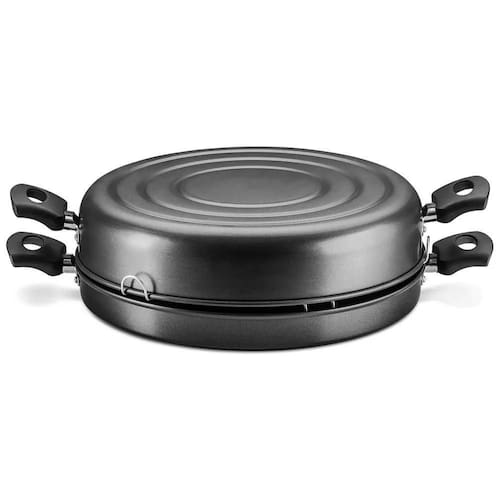 Churrasqueira Grill de fogão MTA Cristal com Revestimento Antiaderente - Grafite Bateu aquela vontade de fazer um churrasquinho, mas está com pouco tempo A Churrasqueira Cristal da MTA é a escolha certa para preparar petiscos de forma rápida. Fácil de usar, em média leva de 20 a 35 minutos para assar e pode ser levado em qualquer lugar. Ideal para preparo no fogão, tem uma grelha redonda que é ótima para grelhar e assar as mais variadas carnes, legumes e afins deixando o alimento bem dourado com menos gordura e suculentoo. Resistente, é feita de alumínio com 1,2 milímetros de espessura, revestimento com 5 camadas antiaderente de fácil limpeza, 4 alças de baquelite antitérmico resistentes ao calor. de refeições saborosas e saudáveis com os produtos da MTA Largura: 38cm Profundidade: 3 cm espaço para assar Altura: 10,4 incluindo o espaço para a tampa Peso: 0,970