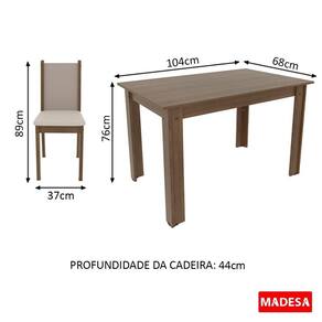 - Itens Inclusos: 1 mesa retangular com tampo de madeira e 4 cadeiras estofadas em tecido Pérola