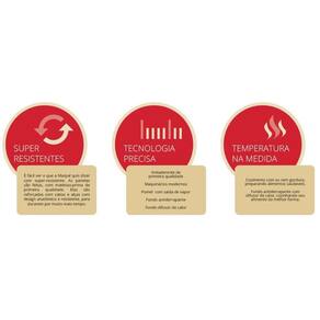 Exclusivo jogo de panelas é prático, robusto e com design incrível. Fabricado em alumínio puro e teflon de cinco camadas, é indispensável em qualquer casa pois sua composição permite atender a todas as necessidades. As tampas são de vidro temperador extremamente resistentes e seguras. Dispõe de saída de vapor para agilizar e facilitar no preparo das refeições. Conta ainda com panela aprovada pela inmetro, vem com 02 anos de . Além da válvula de segurança, é a única com o sistema para liberar vapor com praticidade e segurança. As tampas da caçarolas ainda podem ser utilizadas nas frigideiras para uma fritura com maior tranquilidade e segurança. Todas as tampas tem saída de vapor. Composição do conjunto Panela com cabo 16 Panela com cabo 18 Caçarola com alças 18 Caçarola com alças 20 Fervedor 14 Frigideira funda 18 Frigideira funda 20 Panela 4,5 ltrs + 03 utensilios de nylon