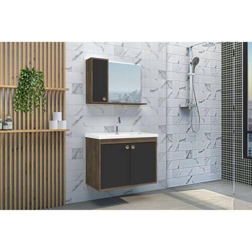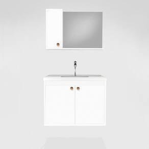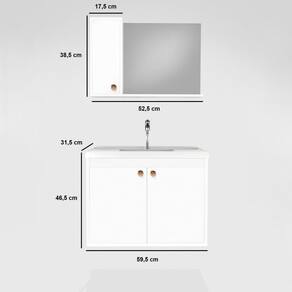 Composto por Espelheira com armário com porta e prateleira interna e espelho, e Gabinete com duas portas e pia inclusa.